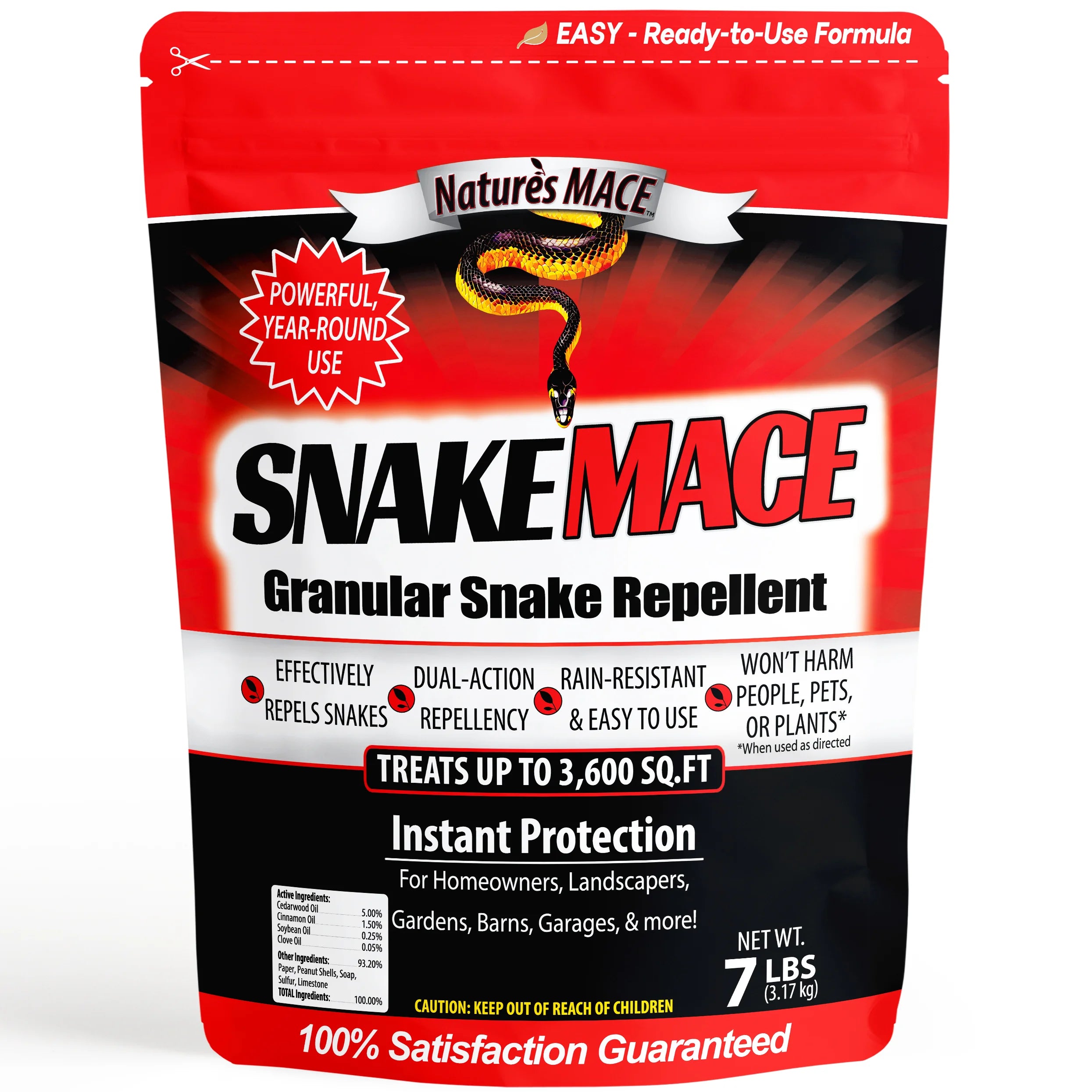 Snake MACE goes to work fast, repelling snakes before they become a bigger issue. Snake MACE is a potent, time-released formula, that provides all-season protection. It works any time of the year. To create Snake MACE, we first analyzed the best snake repellents on the market. We then isolated the most effective ingredients into one ultimate snake repellent. Snake MACE uses more of the most powerful active ingredients. Snake MACE helps protect gardeners, children, pets, farm animals, and all outdoor enthusiasts from snakes. A home-friendly and safe snake repellent that helps prevent snake entry, roaming, and foraging. (When used as directed). Snake MACE is backed by Nature’s MACE 100% Satisfaction Guarantee. Say Goodbye to Snakes and Try it Today Risk-Free!