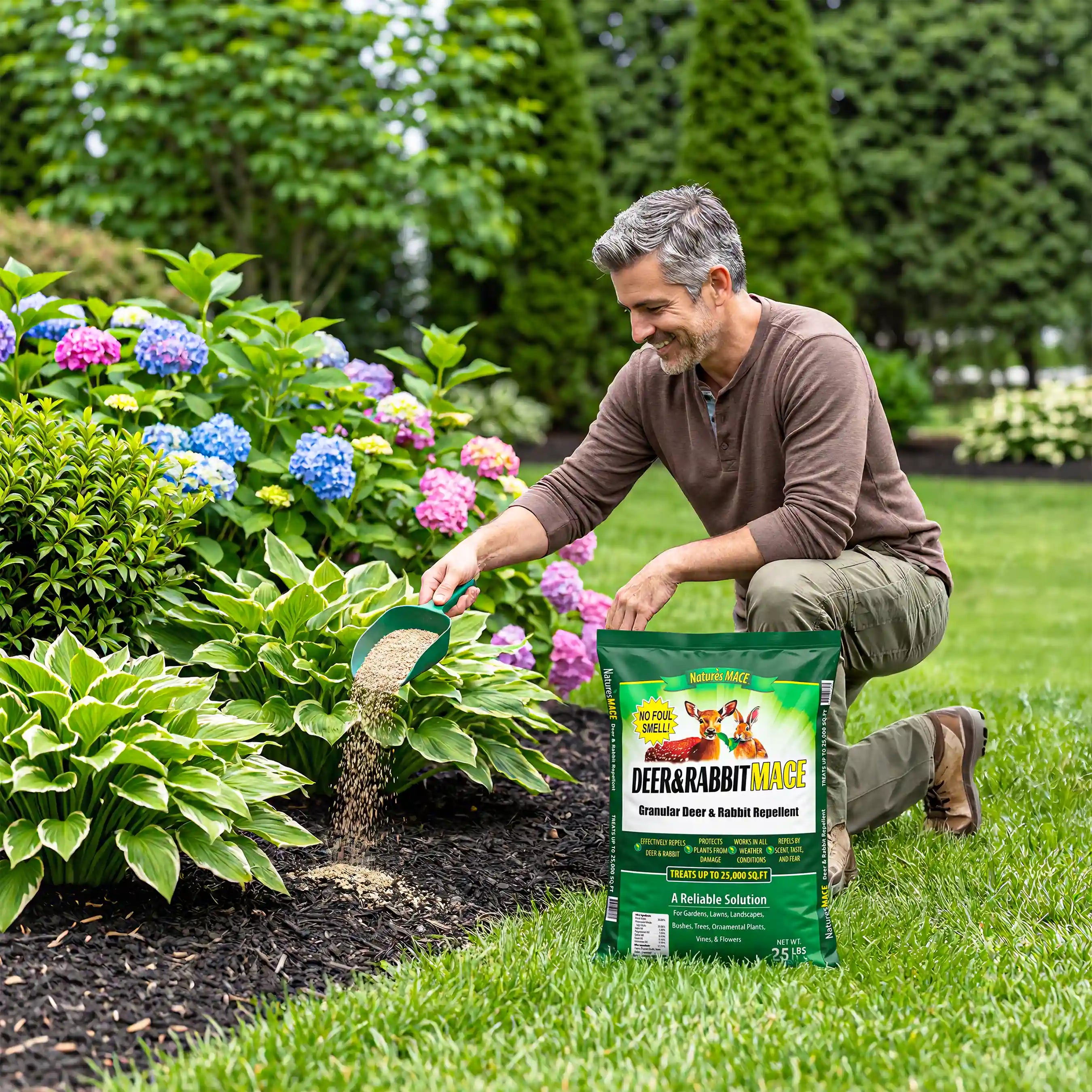 Deer & Rabbit MACE is biodegradable, non-toxic, and easy to use. No mixing or hassle is required. This is the perfect at-home DIY Deer Repellent Solution. Apply directly from the container to quickly repel deer and rabbits. Our time-released granular formula provides long-lasting, year-round plant protection! It will naturally change animal browsing behavior. With regular application, on a 30 to 60-day rotation, you will save shrubs, trees, bushes, vines, and plants by training deer and rabbits to stay clear of your landscaped and garden areas.
